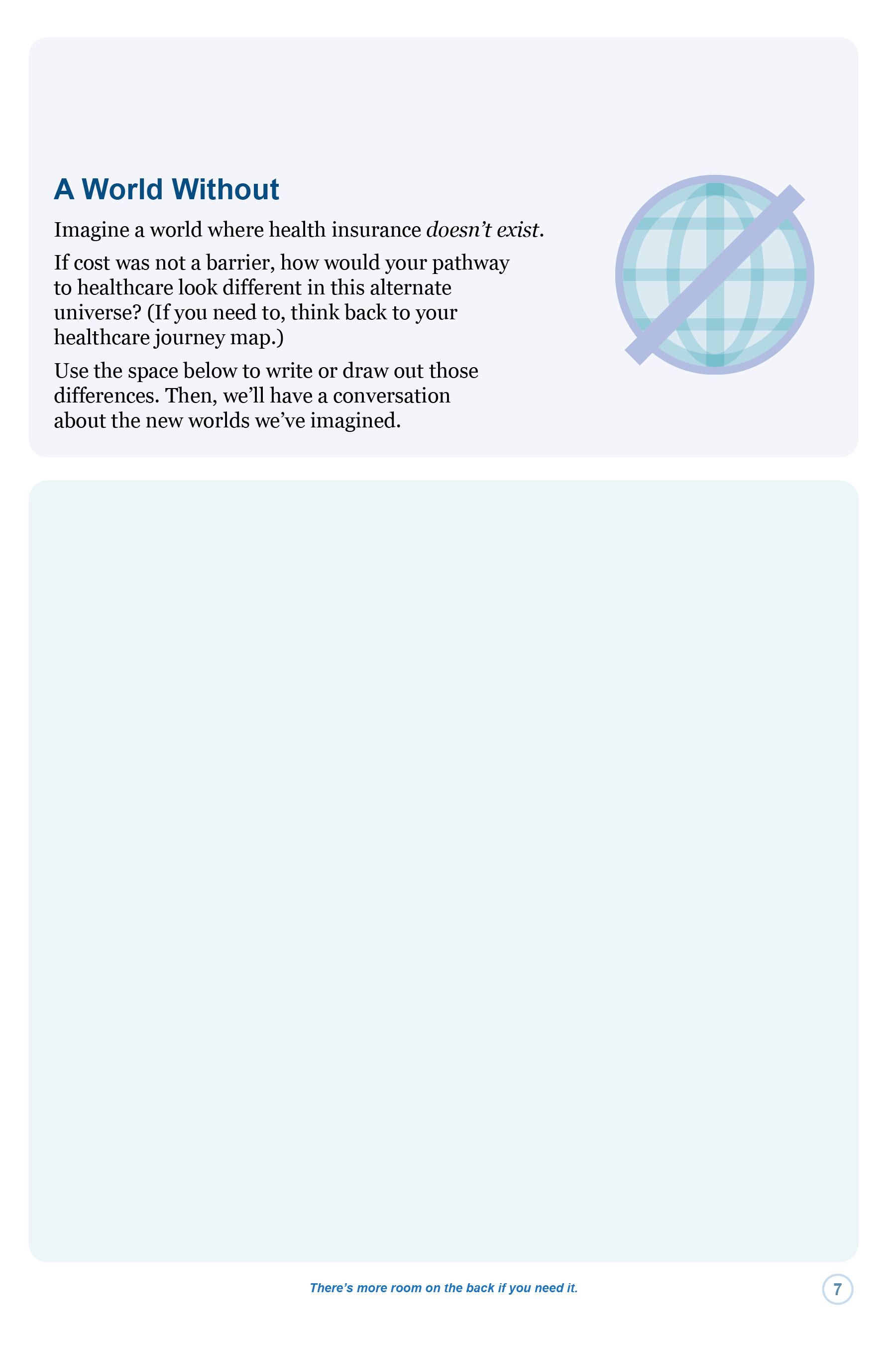 Our learning design encouraged participants to imagine a future where the patient experience was radically different from the present day. We designed and sent our community members a digital and physical workbook to keep them engaged in activities during the co-creation session.